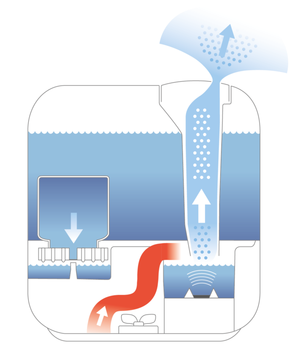 - The mist can be distributed in the room in two directions using the double jet nozzle