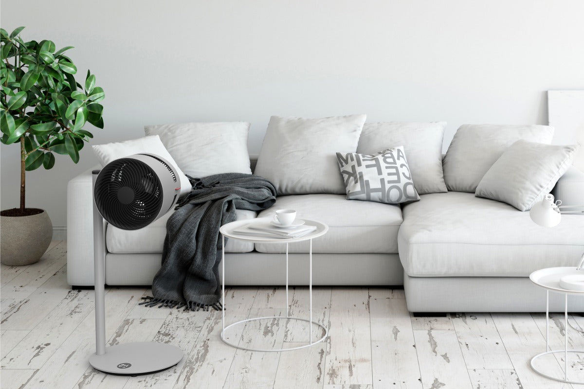 All dies ermöglicht einen wirklich vielseitigen Ventilator. Richten Sie ihn an die Decke für das charakteristische Luftduschen-Gefühl und um heiße und kalte Zonen zu reduzieren, leiten Sie Luft zwischen mehreren Etagen, ziehen Sie frische Luft nach drinnen oder verwenden Sie ihn mit Ihrer Klimaanlage oder Heizung, um eine gleichmäßige Temperatur in Ihrem Raum zu erreichen.